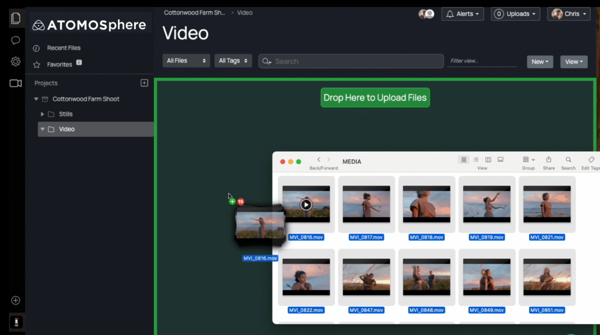 Upload clips while you shoot to the cloud, so your editor can begin assembling the story immediately, or clients can review shots remotely as they happen. ATOMOSphere is perfect for this purpose, but you can also send to Frame.IO or Dropbox directly from your Atomos connected device, such as a Shogun Ultra or Ninja TX.